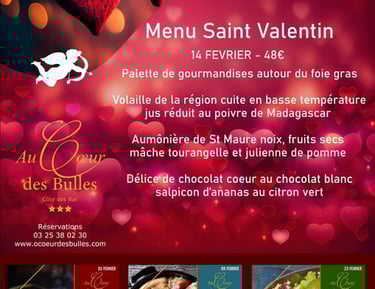 Situé au cœur de la route touristique des champagnes (à Loches sur Ource, dans la région de la Côte des Bar), l'hôtel**** restaurant "Au Cœur des Bulles", le bien nommé, est un écrin de subtilité et de finesse. Aussi bien de par la cuisine qu'il propose, que ses grandes chambres cosys avec une touche de modernisme non déplacé. C’est une escale incontournable pour tout ceux qui désirent visiter les caves de l’Aube pour y dénicher des champagnes d’une finesse rarement égalée.