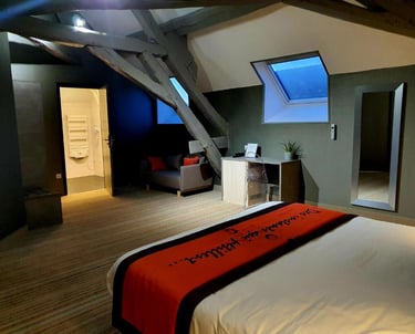 Coté hôtel, c'est un écrin de confort. Des chambres qui allient traditions et modernisme, avec tous les équipements et services que l'on peu attendre d'un hôtel 4 étoiles. Si vous choisissez de séjourner à l'hôtel restaurant "Au Cœur des Bulles", c’est vous qui allez vous retrouver au cœur d’une bulle dont vous ne voudrez plus sortir. Du petit déjeuner au dîner, à table c’est un enchantement et quand viens le moment du repos, lové au cœur d’une chambre chaleureusement agréable, vous allez apprécier un repos réparateur, dans le calme et la subtilité de notre établissement.