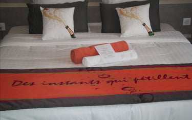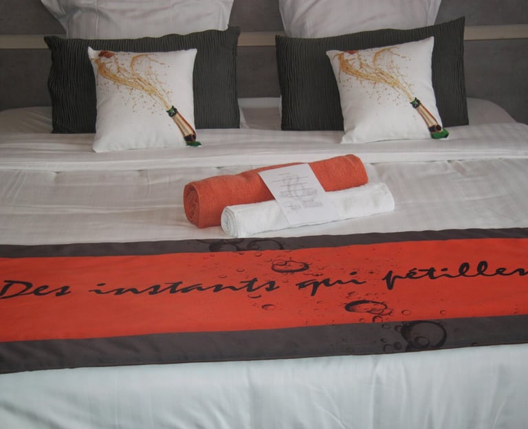 Une Grande Suite et ses poutres apparentes Champenoises qui vous plongera dans un confort cosy afin de profiter des instants qui pétillent